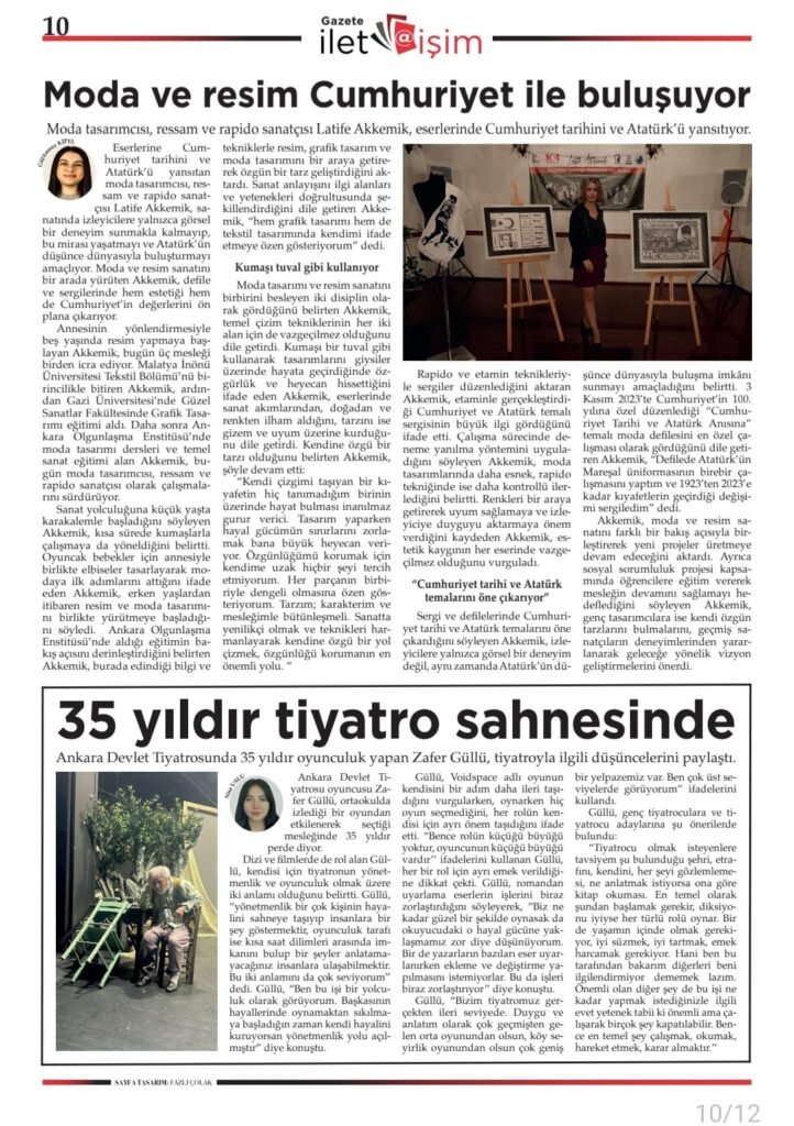 Ankara Hacı Bayram Veli Üniversitesi İletişim Fakültesi’nde Gazetecilik Bölümü’nde okumakta olan Gülümnaz Yaren Kipel ile gerçekleştirmiş olduğumuz Gazete İlet@işim’in basılı 10. Sayısı 31.12.2025 tarihinde yayımlandı. İletişim Fakültesi ana sayfasından ulaşabilir siniz.